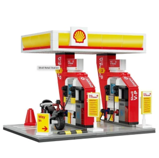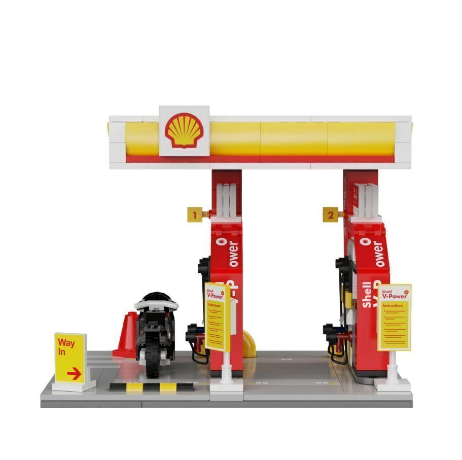 CaDA Shell Retail Station é um produto oficialmente autorizado. Reproduz o layout mais comum das estações da Shell. O conjunto vem com uma pequena motocicleta. O tubo de reabastecimento pode ser retirado e instalado no carro para simular a cena.