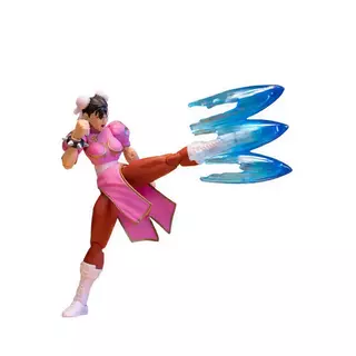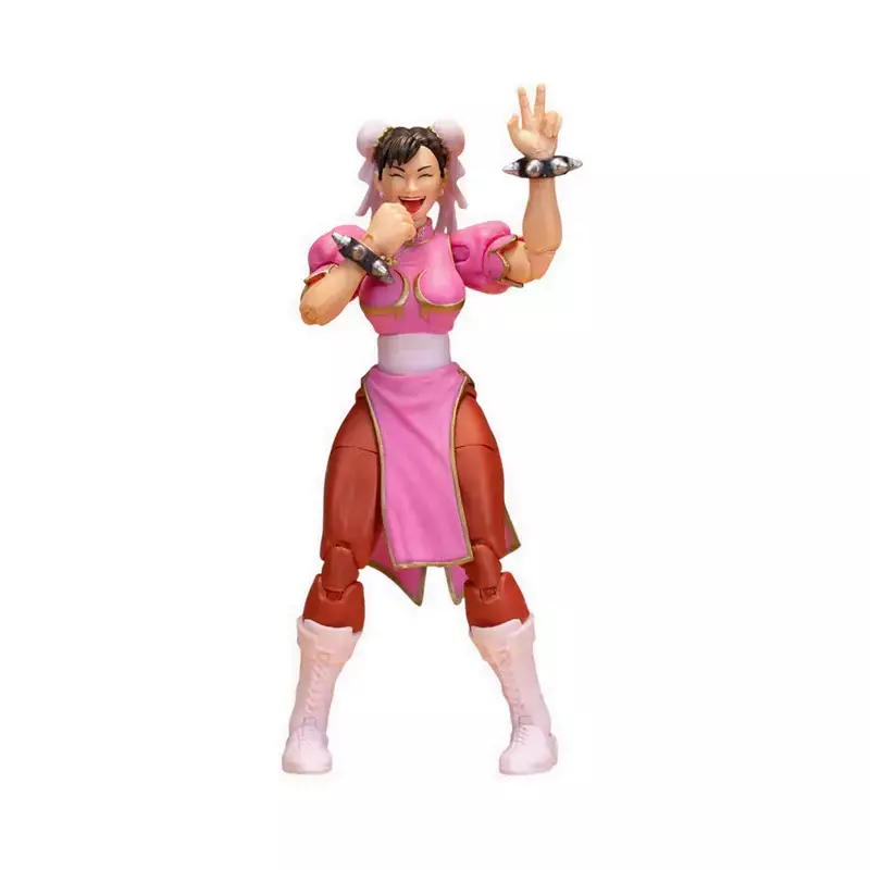 Inspirada no visual clássico de Street Fighter II, Chun-Li vem vestida com seu tradicional qipao azul com detalhes dourados e os icônicos braceletes com espinhos. Uma verdadeira homenagem à lutadora que fez história no mundo dos videogames!