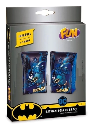 Encha de aventura o verão da garotada! Produzida em vinil resistente, a Boia de Braço Batman da Fun Divirtase possui duas câmaras de ar independentes, o que dá mais segurança para os pequenos, pois em caso de furo ou esvaziamento acidental de uma delas, a outra câmara garante sua estabilidade na água. Pode ser levada desinflada para qualquer lugar ocupando pouco espaço. Vêm com válvula, película para retenção de ar e estampa com tinta atóxica. Diversão do começo ao fim ainda mais junto com o Homem Morcego mais temido dos vilões! Tema/ Personagem: Batman Material/Composição: PVC Idade recomendada: A partir de 3 anos de idade