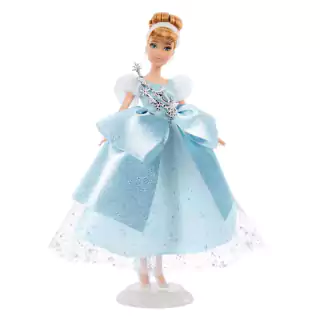 Vestindo uma moda luxuosa inspirada em seu memorável vestido azul, a boneca Cinderela brilha em cetim e glitter.