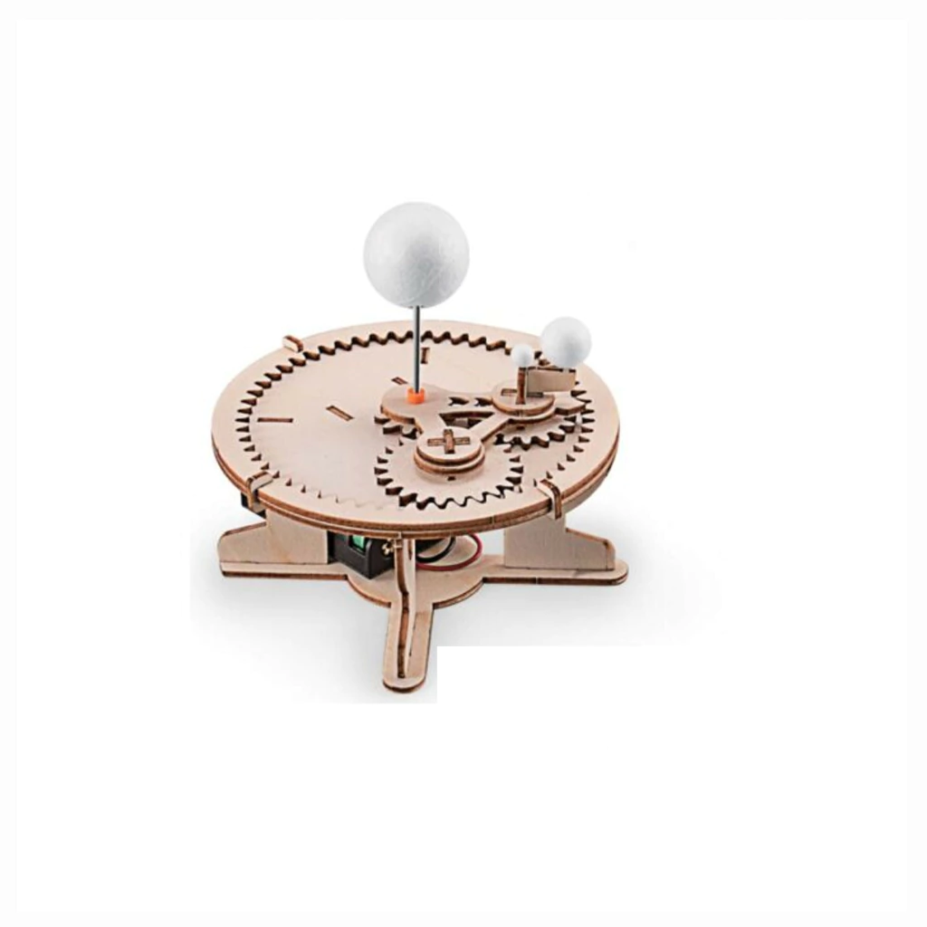 CONTÉM: 33 PEÇAS DE MADEIRA, 1 SUPORTE DE PILHAS AA, 3 BOLAS DE ISOPOR, 1 EIXO, 1 DUPLA-FACE, 2 BUCHAS, 1 MOTOR E 1 MANUAL.