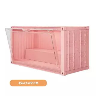 Porta de fechamento com imã. Esse expositor pode ser empilhado com outros iguais.