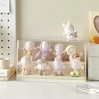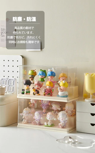Expositor em acrílico. Possui arquibancada de 1 degrau. Esse expositor pode ser empilhado com outros iguais.