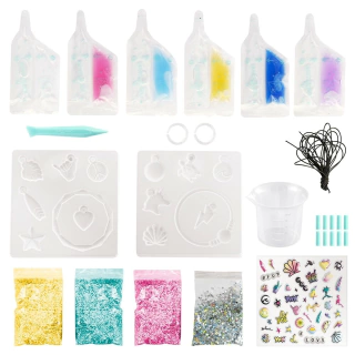 Conteúdo: 6 sachês de gel coloridos, 1 bandeja molde, 1 espátula, 1 cordão, 2 anéis, 4 sachês de glitter, 1 potinho e 5 ferramentas para mistura.