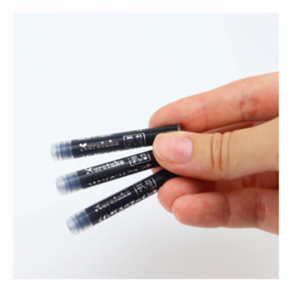 1) Remova a tinta da caneta. 2) Mergulhe a ponta da caneta pincel em água morna. Troque a água até não ver mais líquido preto (1-5 dias). *Por favor, não remova a parte de metal ou desmonte a parte do pincel, caso contrário, pode causar vazamento de tinta. 3) Enxágue bem com água corrente, depois seque e retire o excesso de água com lenços de papel. Deixe-o fora da luz solar direta para deixá-lo secar por um dia ou mais. *Se você remontar a caneta sem secá-la, a tinta pode vazar pela lateral. 4) Insira o novo refil de tinta.