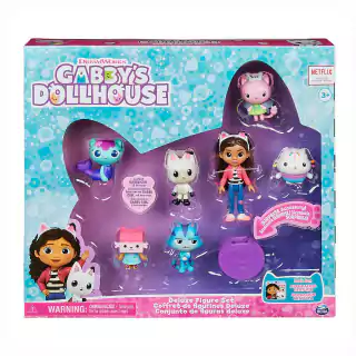 Leve para casa seus personagens favoritos da Casa de Bonecas de Gabby com o Conjunto de Bonecos Deluxe! Este conjunto de presente é obrigatório para os fãs de Gabby's Dollhouse e vem com 7 figuras colecionáveis e uma Dollhouse Delivery com um acessório surpresa dentro.