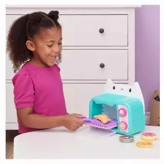 Este brinquedo de cozinha superdivertido apresenta mais de 11 acessórios de cozinha para brincar, para que as crianças possam fingir que estão fazendo todos os seus assados favoritos, desde rosquinhas e croissants para gatinhos até pizzas deliciosas, rolinhos de canela e muito mais.