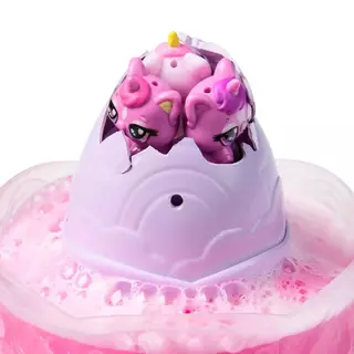 Com seu amor e cuidado, esses Hatchimals brincalhões ganham vida de uma nova maneira colorida: ovos que eclodem na água, mudando a cor da água para combinar com o personagem dentro.