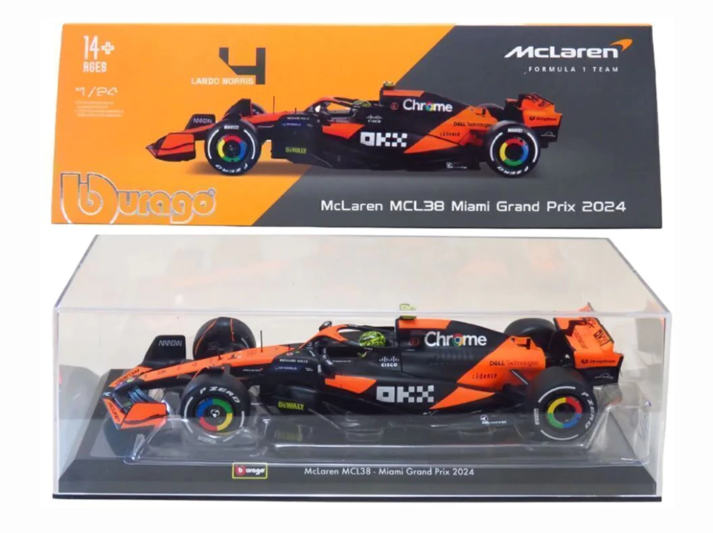McLaren MCL38 Lando Norris #4 Miami GP Formula 1 2024 McLaren Formula 1 Team 1/24 Bburago 28033