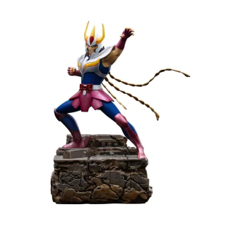Nobre, complexo e maduro, sempre disposto a sacrificar sua vida pelos amigos quando necessário, o mais poderoso e furioso dos Cavaleiros de Bronze, se posiciona nos degraus de pedra do Santuário de Atena, a deusa protetora do mundo dos homens à quem ele fielmente serve e protege, preparado para o combate ele foi capaz de despertar seu sétimo sentido, o que o colocou nas fileiras dos Cavaleiros de Ouro e dos Juízes de Hades em termos de poder e habilidade. Assim a Iron Studios orgulhosamente apresenta a estátua "Phoenix Ikki - Saint Seiya - Art Scale 1/10", com o Cavaleiro que assim como na lenda da ave que está associado, aumenta seu poder cada vez que morre e revive, sobre uma base formada por degraus em ruínas do Santuário. A Iron Studios também traz a estátua deluxe, “Phoenix Ikki - Saint Seiya – Deluxe Art Scale 1/10” sobre uma base com o avatar do mítico pássaro imortal que renasce das cinzas e nomeia a constelação que representa.