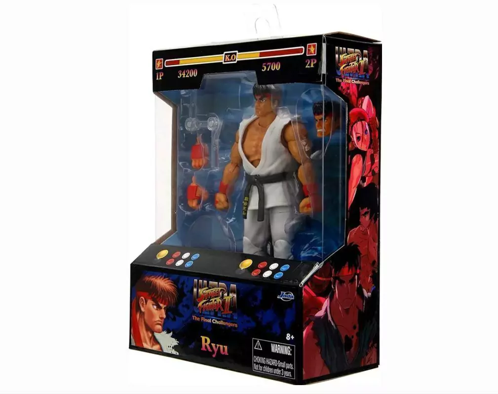 Esta action figure é totalmente articulada, permitindo que os colecionadores recriem uma variedade de poses dinâmicas e emocionantes do personagem Ryu durante suas batalhas no jogo Street Fighter II.