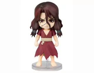 Chibi é uma gíria japonesa que descreve algo pequeno e termo também usado para descrever um estilo específico de caricatura em que os personagens são pequenos, com membros atarracados e cabeças grandes, parecidos com pequenas crianças, muito usados em trabalhos de mangá, animes e na linha de figuras Figuarts Mini da Bandai em estilo Toy Art. Criado em 2017 pelo escritor japonês Riichiro Inagaki e ilustrado por Boichi, o mangá Dr. Stone foi adaptado em anime em 2019 e conta a história de Taiju e Senku, dois amigos amantes da ciência que em um futuro apocalíptico onde as pessoas de todo planeta foram petrificadas, buscam reconstruir a civilização, rivalizando com um inimigo chamado Tsukasa Shishio que acredita em um processo seletivo para reviver pessoas, fato que acaba gerando dois clãs rivais: o Reino da Ciência de Senku e o Império do Poder de Tsukasa. Shishio Tsukasa é o ex-antagonista principal do Dr. Stone. Ele foi o antagonista dos primeiros arcos, sendo seu objetivo diminuir a população humana para criar um mundo sem tecnologia moderna para os jovens de coração puro. Apesar de suas alegações de que nenhuma ameaça viria depois de Senku e Taiju, o que provou ser irônico, Tsukasa se tornou um dos maiores obstáculos ao Reino da Ciência de Senku e à restauração da humanidade como um todo em geral. A fim de lutar e impedir que Senku estabeleça uma civilização cientificamente avançada, ele funda sua própria sociedade composta por fortes guerreiros para promover sua agenda. Eventualmente chegando a um impasse, ele estabelece uma trégua temporária com Senku depois que este propôs salvar sua irmã e, tendo reafirmado sua promessa de nunca mais deixar Senku ser ferido, finalmente derrota o traidor Hyoga junto com ele. Depois que sua vida foi salva por Senku, despetrificando-o de seu estado criogênico, Tsukasa se junta ao Reino da Ciência e embarca com eles em sua viagem aos Estados Unidos, canalizando seus ideais de maneira diferente, mas ainda lutando por um mundo moralmente puro sem exploração dos inocentes.