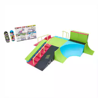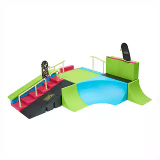 A Mega Rampa X-Connect Neon inclui tudo o que você precisa para construir um parque personalizado incrível para você aperfeiçoar suas habilidades no skate de dedo! Faça diferentes combinações com trilhos, escada e mini rampas para aprender e progredir em seus truques. O playset vem com cores vibrantes para se transformar em um Skate Park Neon!
