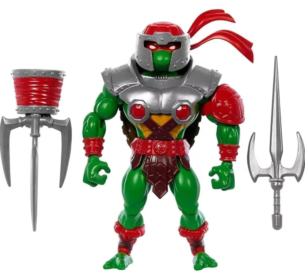 A figura de ação do Raphael de 14 centímetros com 16 pontos de articulação representa uma junção dos mundos de Masters of the Universe e Teenage Mutant Ninja Turtles, possui com armadura inspirada em Eternia, além de uma manopla e sua arma de batalha para recriar poses incríveis. A peça que você precisa para iniciar ou completar sua coleção origens Masters of The Universe.