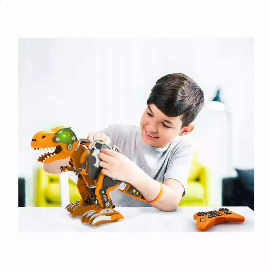 Rex é um dinossauro para introduzir as crianças à programação de uma forma fácil, divertida e criativa. Seguindo as instruções passo a passo, as crianças podem aproveitar a conquista de criar seu próprio brinquedo interativo. Uma vez construído, o Rex pode ser controlado diretamente ou programado através do controle remoto.