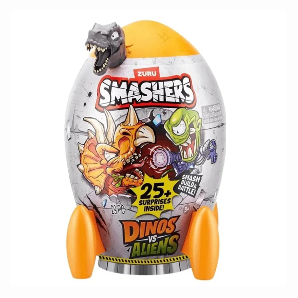 Dentro do ovo em formato de foguete, as crianças encontrarão mais de 25 surpresas incríveis, incluindo um dinossauro para montar, alienígenas prontos para o combate, slime, areia, ovos menores, armas, disco voador com peças removíveis, além de adesivos e cards temáticos para personalizar a brincadeira.